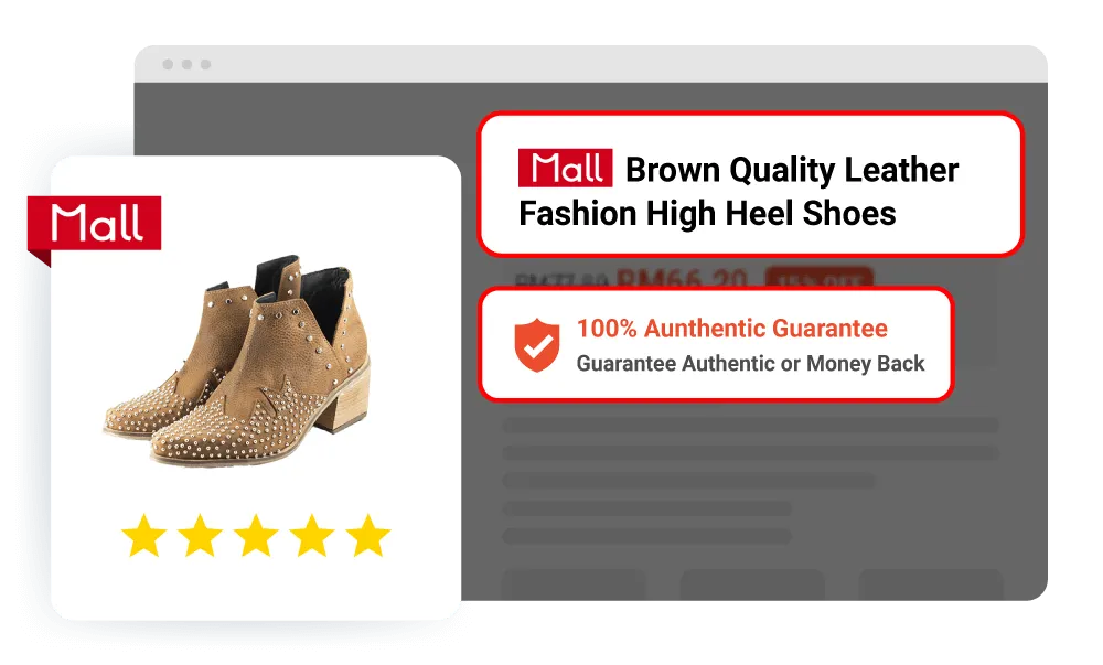 Mall Sellers in Shopee are only reserved for brand owners and the official distributors of a particular product based on invitation basis. Shopee Mall Seller’s shop and listings will be identified by the “Mall” tag. On top of that, all your product listings will be tagged with the “Mall 100% Authentic Guarantee” tag.
