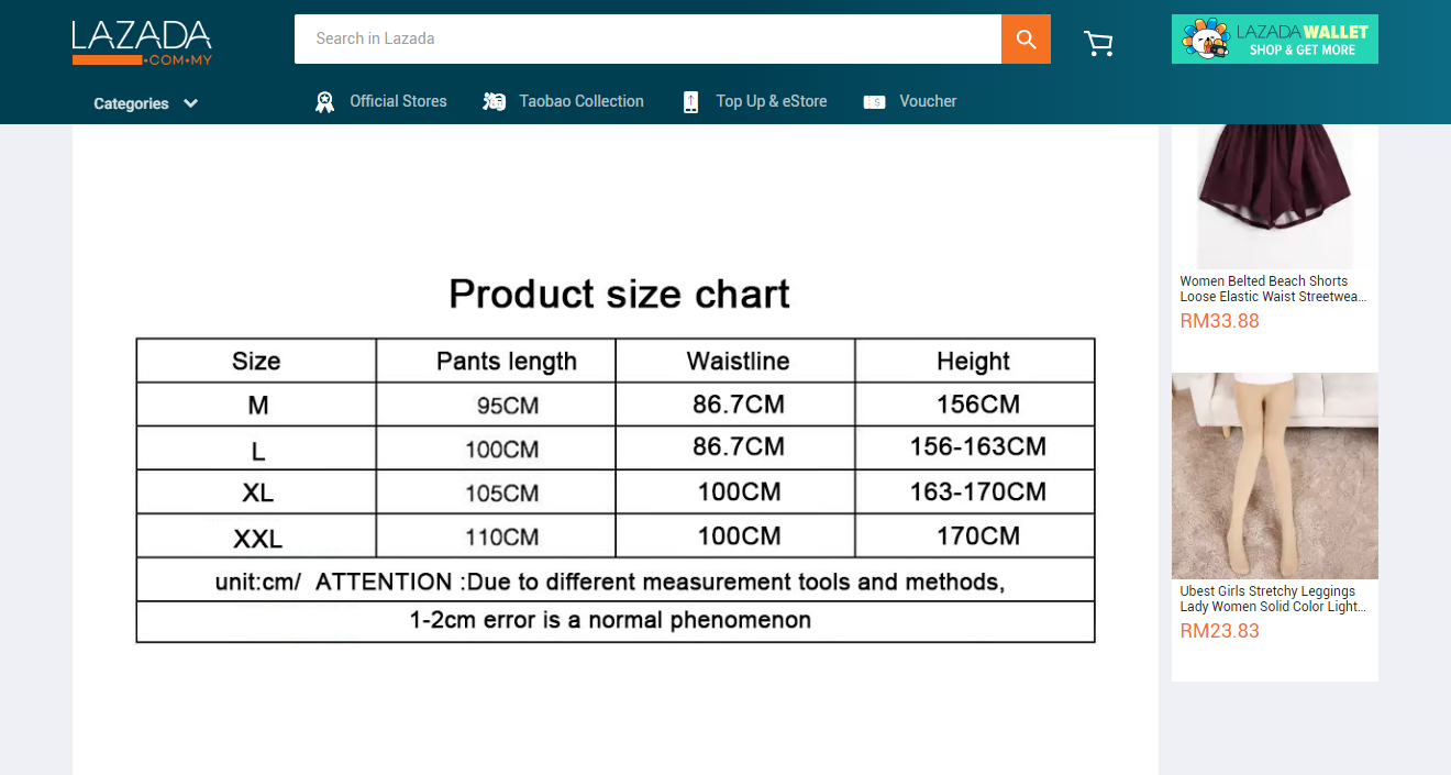 Quality images and informative descriptions are the secrets behind an effective product listing. It creates trust and attracts purchase without the possibility of examining the physical product. Give your product the impression it deserves by uploading images in multiple angles. Shoppers also rely on product descriptions to provide the details they need to know. Check out Lazada’s apparel category where size chart, measurement guide and product specification are shared in the description box (as shown below).