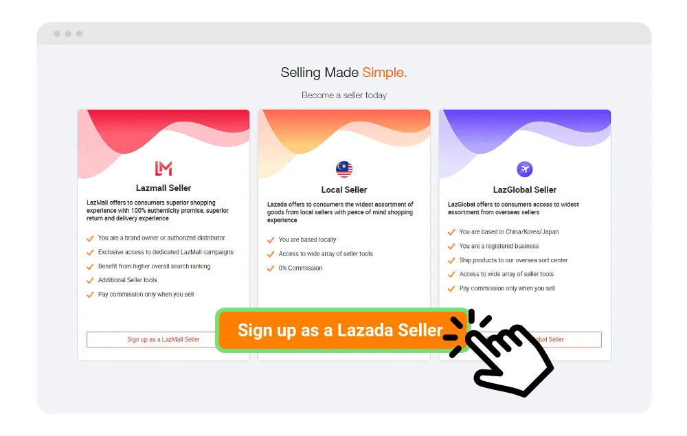 b. Click on “Sign up as a Lazada Seller”.