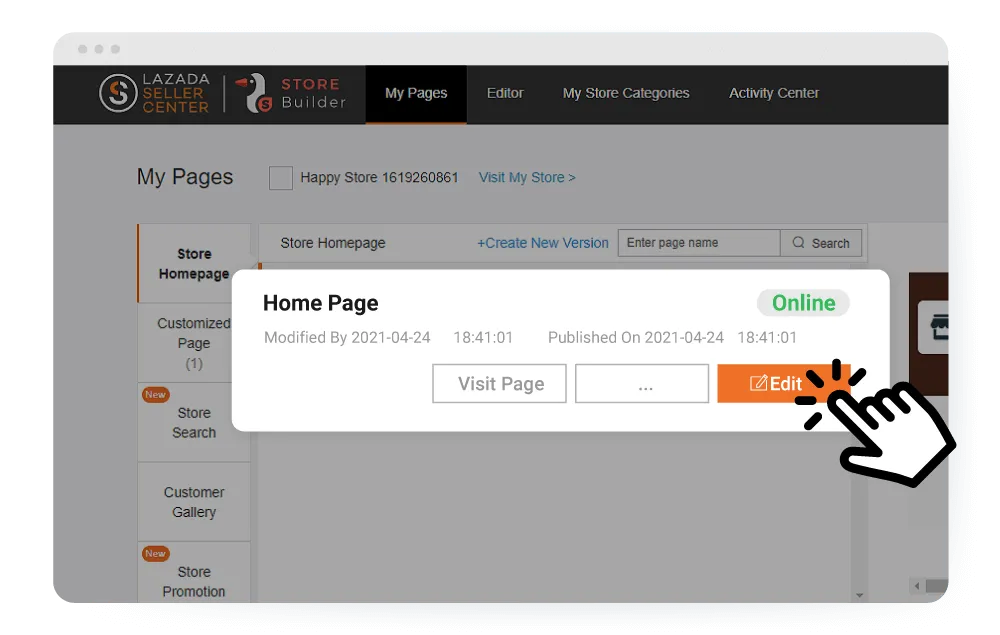 b. Over here, you can build your Lazada store and customize your page.