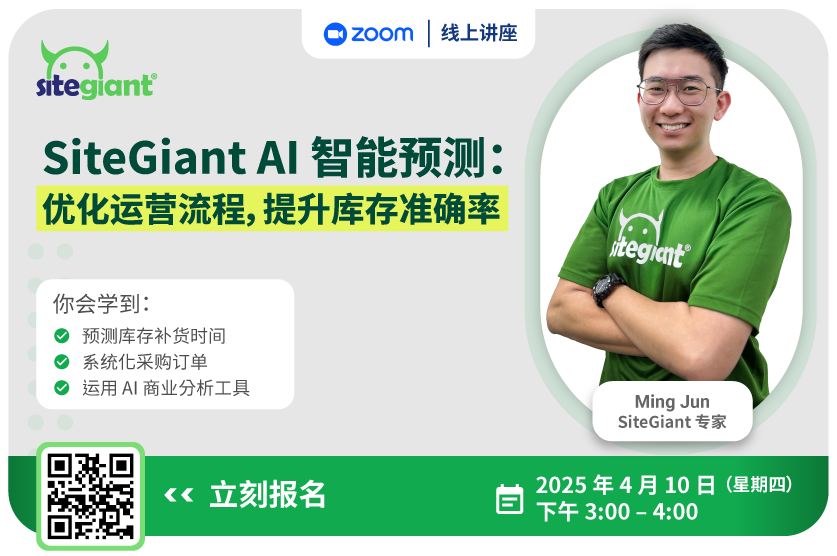 探索如何通过SiteGiant的免费库存预测线上讲座会来完善您的库存管理。学习最佳补货策略、减少过剩库存并提升您的业务效率。名额有限,立即注册!