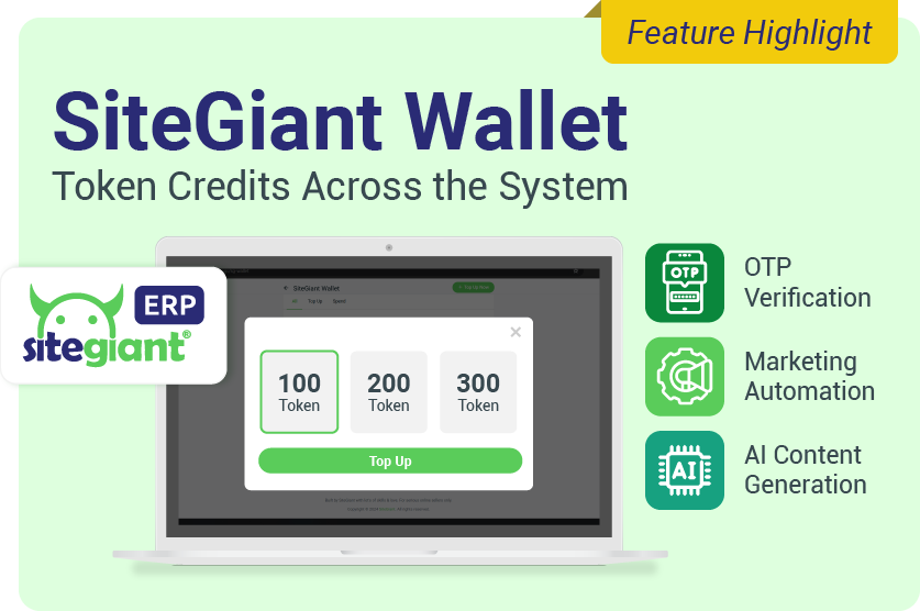 Boost your eCommerce business with SiteGiant Wallet’s 3 key features: secure OTP verification, marketing automation, and AI-powered descriptions.