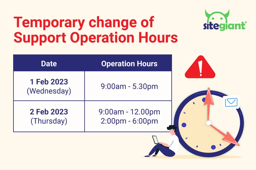 Gong Xi Fa Cai! Read more about our support team operating hours during this Chinese New Year. SiteGiant wishes all our customers and friends a Happy Chinese New Year!