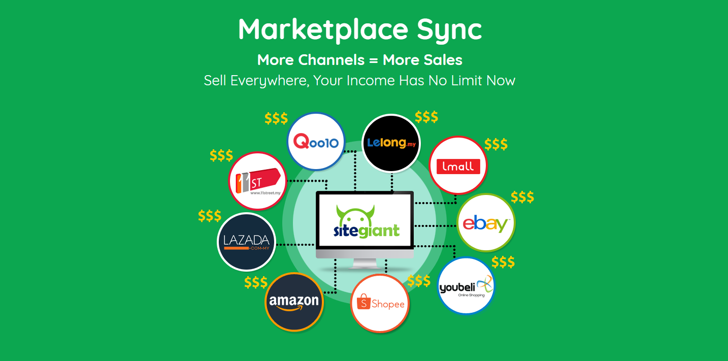 With SiteGiant Marketplace Sync, you can sync your products to these well-known, heavy traffic marketplaces. Once there is order, it will be synced back to your SiteGiant web store and update the inventory. This way, you will be able to better manage your products and will not worn yourself up.