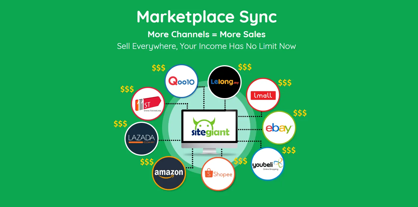 With SiteGiant Marketplace Sync, you can sync your products to these well-known, heavy traffic marketplaces. Once there is order, it will be synced back to your SiteGiant web store and update the inventory. This way, you will be able to better manage your products and will not worn yourself up.