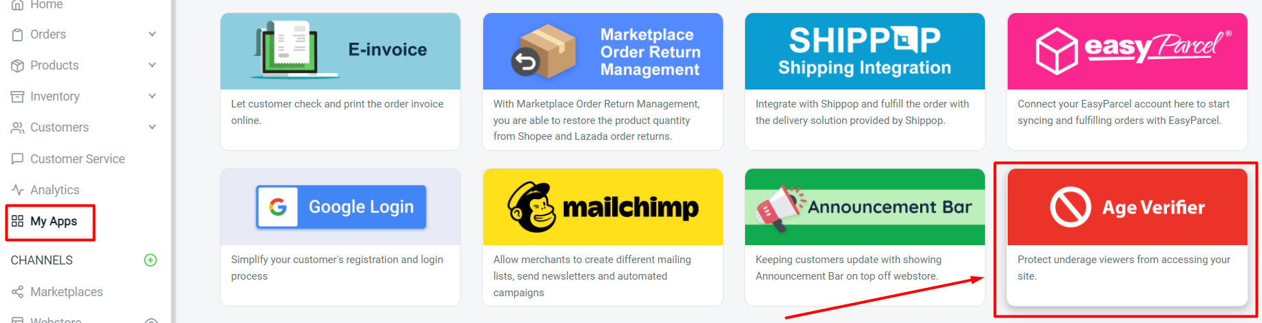 You may start selling and integrating your Shopee SG channels with SiteGiant under Settings > Sales Channels > Add New Sales Channels.