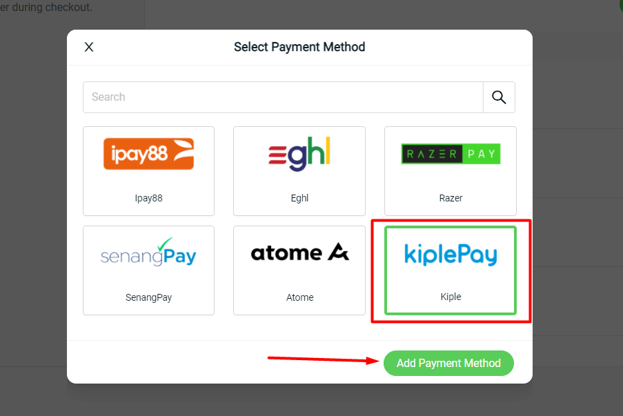 You may now enable your customers to checkout on your webstore through Kiple payment gateway under Settings > Payment > Add Payment Method.