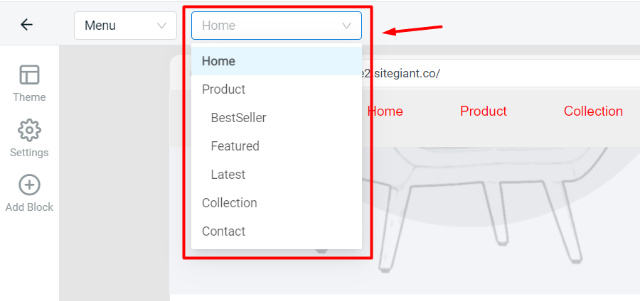 b. View pages in webstore builder based on menu list