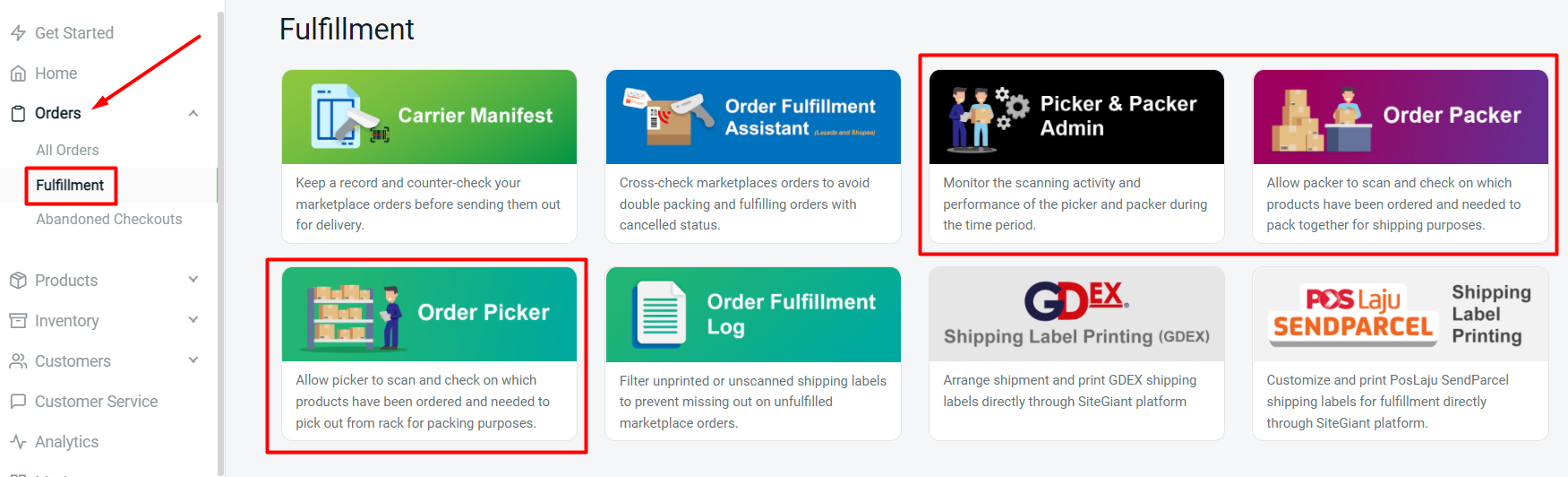 You may access the order packer or order picker tools based on your own account or staff account accordingly.