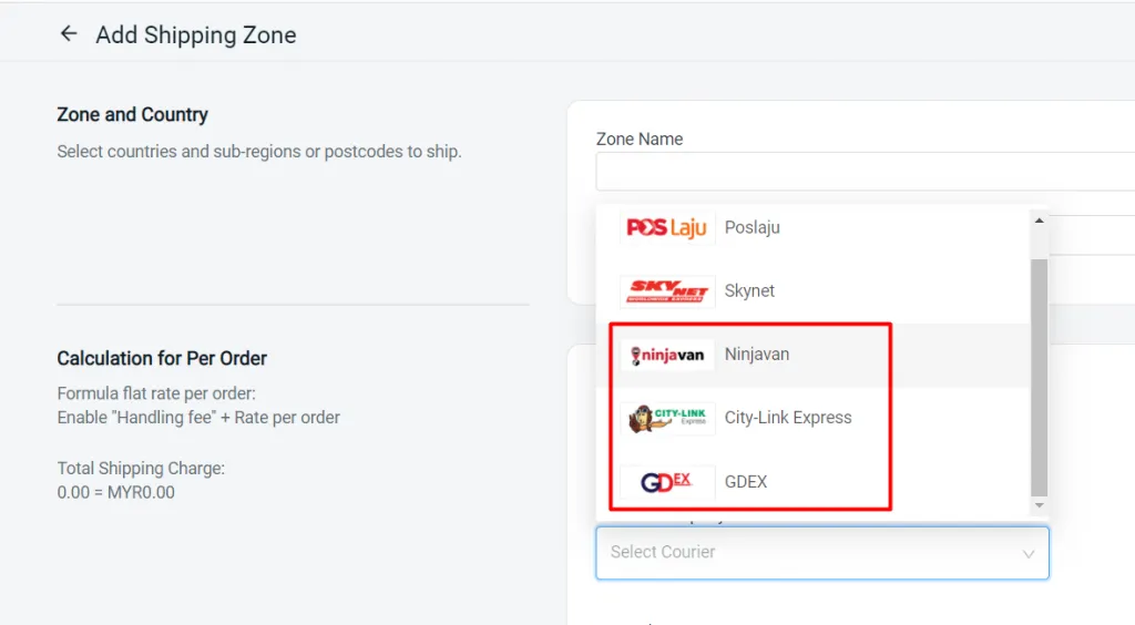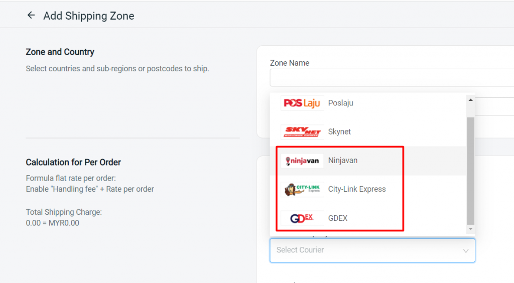 You may now enable Ninjavan, City-Link Express and GDex shipping for your customers as well under Settings > Shipping > Add Shipping Zones > Add Shipping Method and Rates.