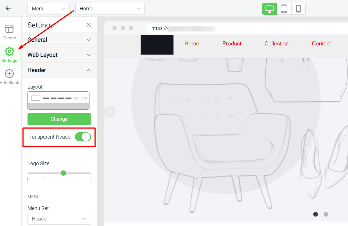 A new transparent header option has been added under Channels > Webstore > Webstore Builder > Settings.