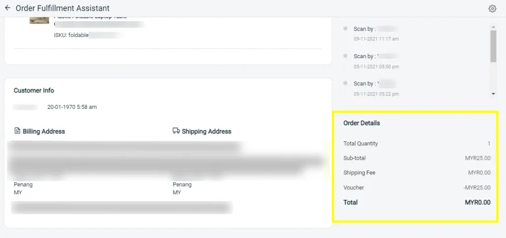 You may view the order details listed on the right side of the order fulfillment assistant page.