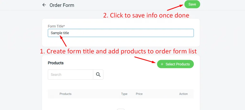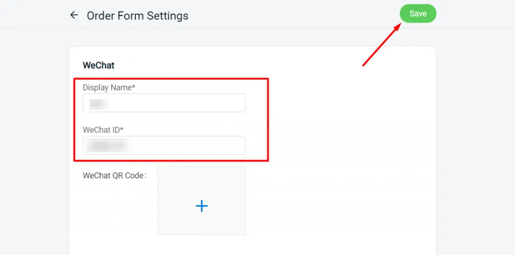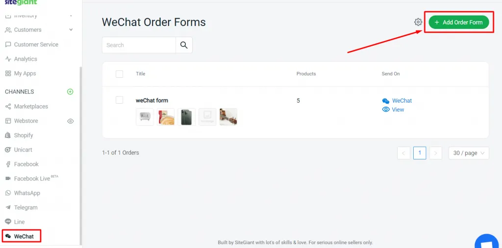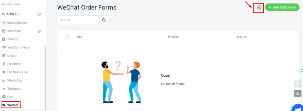 Step 2: Create product order form under WeChat > Add Order Form.