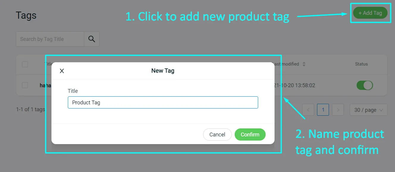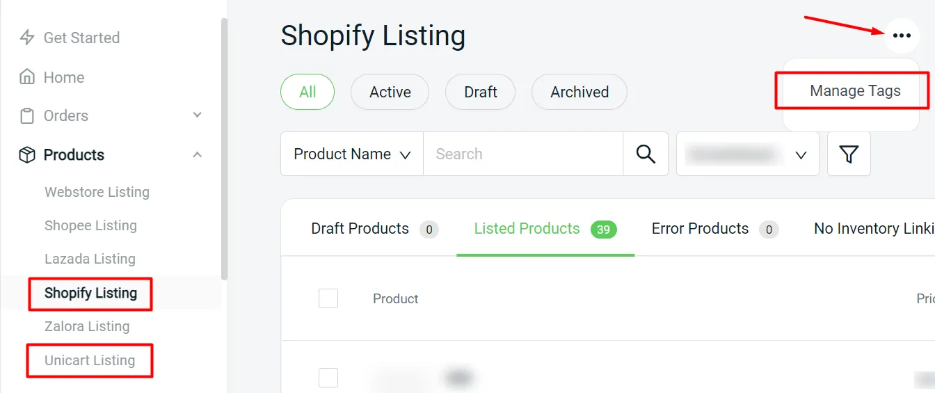 Step 1: Create tag under Shopify/Unicart listing > Setting > Manage Tags.