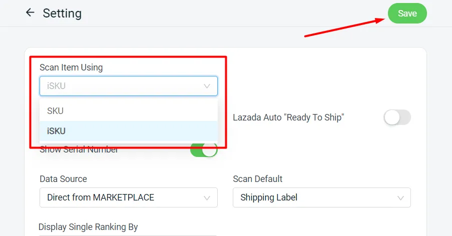 Enable scanning with iSKU under Orders > Fulfillment > Order Fulfillment Assistant > Settings.
