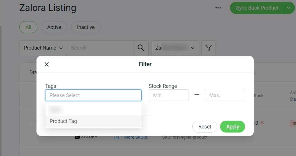 Step 1: Create tag under Zalora listing > Setting > Manage Tags.