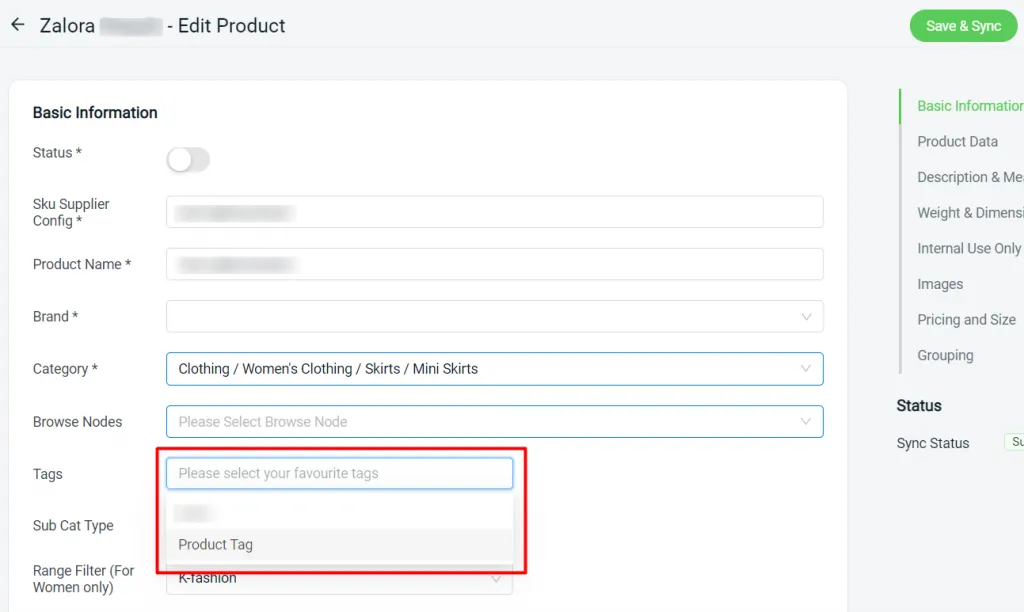 Step 3: Assign product tag under Zalora product detail page.
