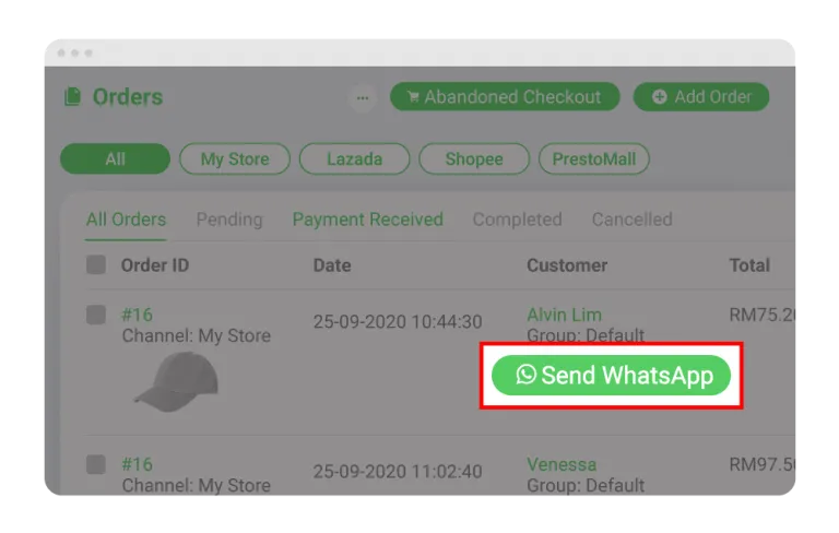 You no longer need to search for your customer’s phone number in the “Customer Page”. We have added a “Send WhatsApp” button in your order listing page to make it easier for you to reach out to your customers via WhatsApp.