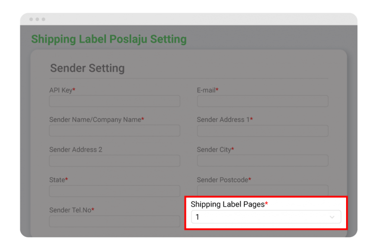 With the newly added “Shipping Label Pages” section in the Pos Laju Shipping Label setting, you can now configure the number of shipping label copies to be printed out based on your preference.