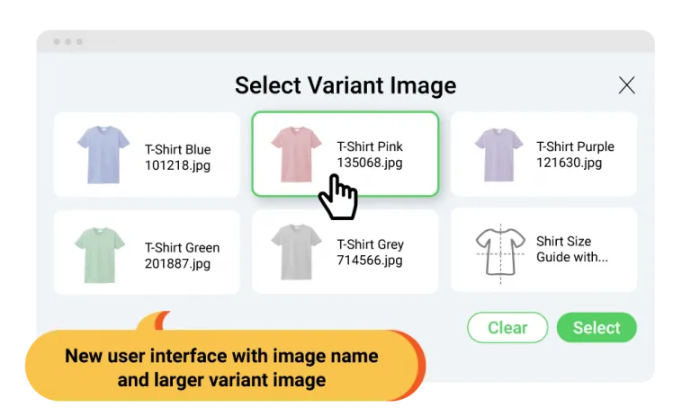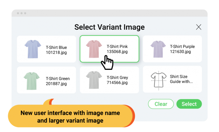A good user interface is important to provide your customers with a comfortable shopping experience in the webstore. Hence, we have enhanced the display of the product variant in the Product Selection Page. The variant image is now bigger and you can easily view the product name right beside the image.
