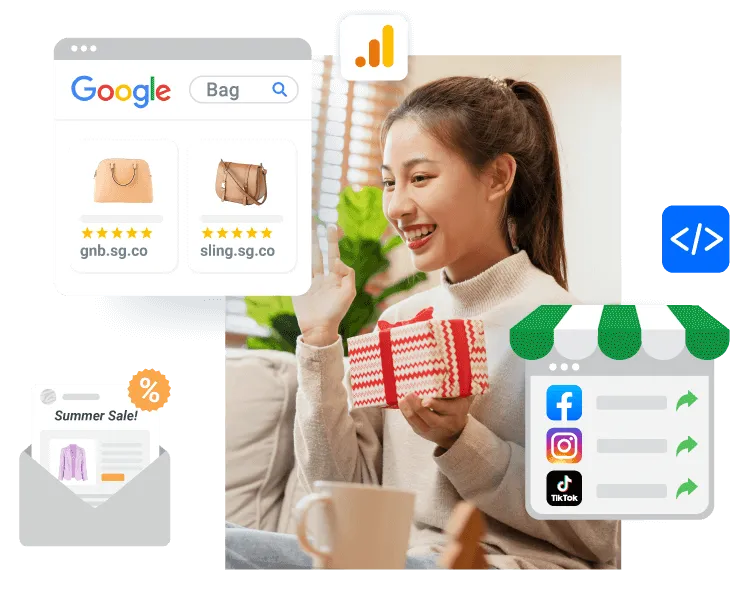 Build and establish your business branding through your very own webstore and engage with various customers through many more channels such as marketplaces, social media and messaging apps.