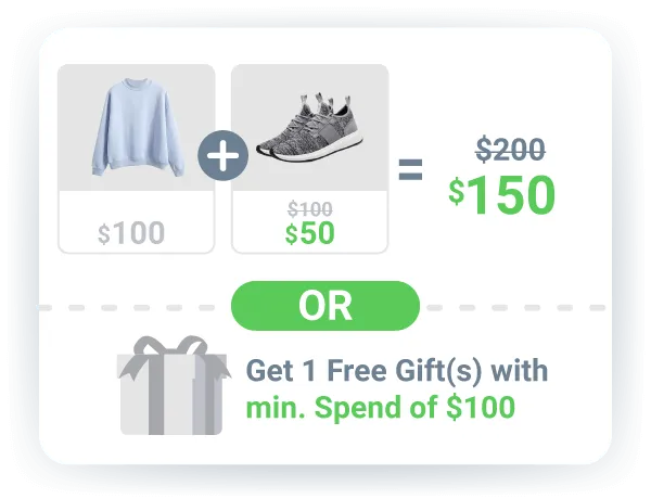Set a discounted price for add-on products when purchased with main products or offer a free gift with minimum spend amount to encourage customer to spend more.