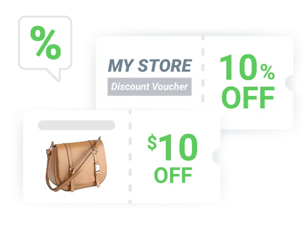 Encourage customers to shop more by creating store vouchers for storewide usage or product vouchers for specific products.